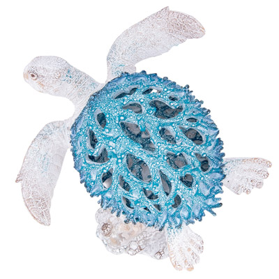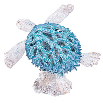 10 1/2 Inches Long Aqua Coral-Look Turtle on Coral