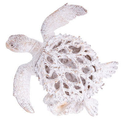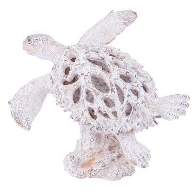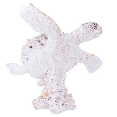 10 1/2 Inches Long White Coral-Look Turtle on Coral