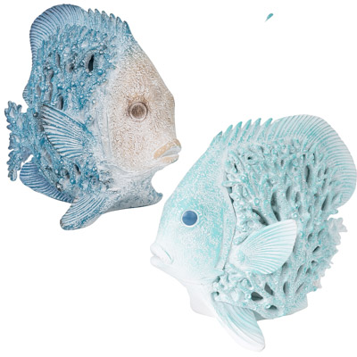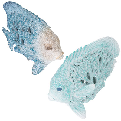 A Dramatic Decorative Polystone Fish You Won’t Want to Get Away – It Looks Like It’s Made from Undersea Coral and Comes in Two Assorted Colors, Blue and Aqua – Reel In This Sizeable Catch Accessory to Complete a Nautical or Coastal Themed Room Anywhere in the House – Must be Ordered in Multiples of Two