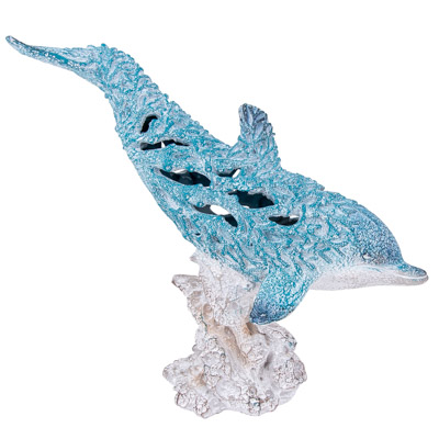 13 Inches Long Aqua Coral-Look Dolphin on Coral