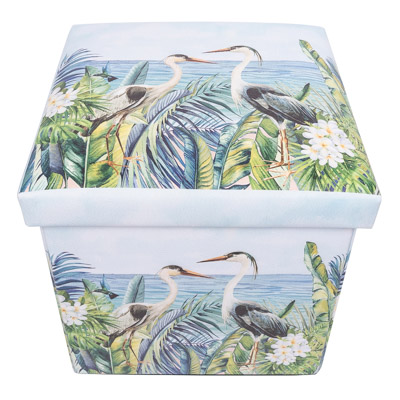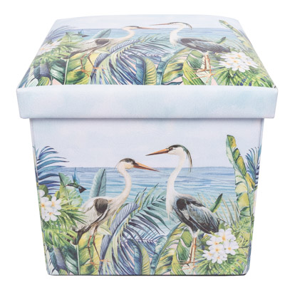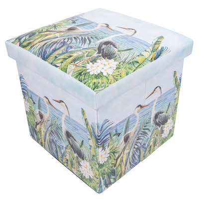 It’s Decorative and Practical, This Leatherette-Covered Storage Box has a Colorful Nature Scene With a Pair of Egrets or Herons on All Sides and on the Lid – It’s a Furniture Accessory That’s a Place to Tuck Away Unsightly Clutter and This Storage Cube Folds Flat When Not Needed