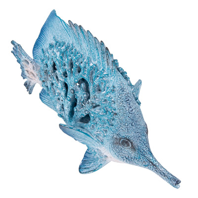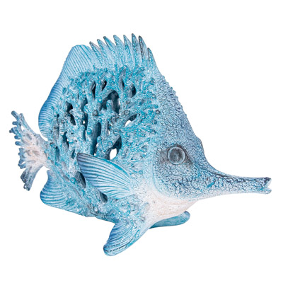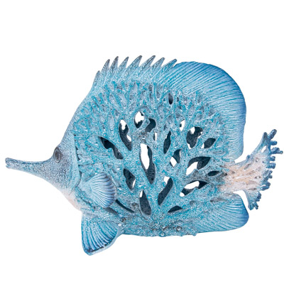 This Unique Fish Figurine is an Artistic Representation of a Long-Nosed Butterfly Fish – Add it to a Nautical or Coastal Themed Room Either Standing Alone or in a Vignette for the Bookcase or Mantle – It’s Actually Made of Polystone But It Looks Like It’s Been Created From Actual Sea Coral Colored a Stunning Aqua Blue Color