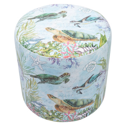 It’s Round, Covered with Leatherette with Sea Turtles in an Attractive Underwater Scene – It’s a Beautiful and Practical Coastal Foot Stool Ottoman That’s a Versatile and Decorative Furniture Accessory to Use as an Extra Seat, Rest Your Feet Up, and Move Around Wherever It’s Needed or Wanted