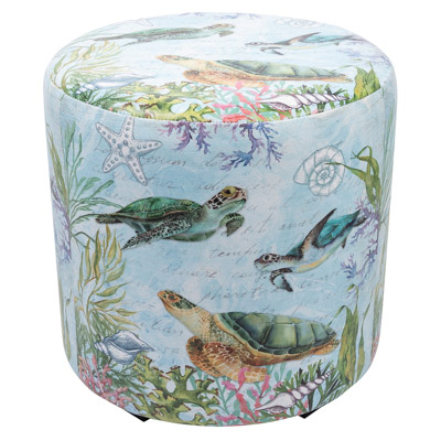 15 3/4 Inches Wide Round Sea Turtles Leatherette Stool