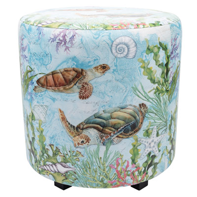 15 3/4 Inches Wide Round Sea Turtles Leatherette Stool