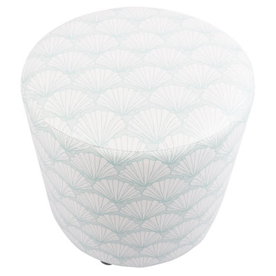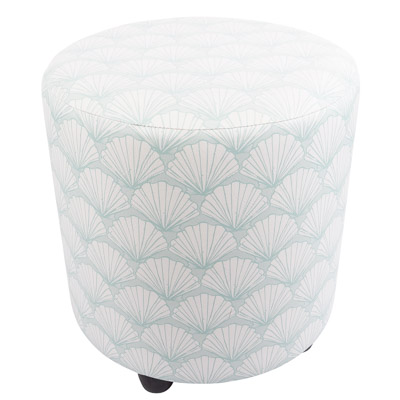 A Decorative and Functional Coastal Furniture Accessory to Fit Any Room or Color Scheme – A Round Ottoman or Foot Stool That’s Covered with Leatherette with Scallop Shell Design Repeated on the Top and Sides – It’s an Extra Seat Wherever It’s Needed, It’s a Foot Rest You Can Move Around the Seaside Cottage