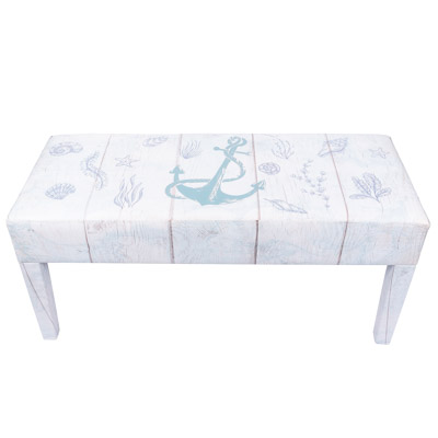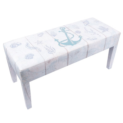 It’s Practical and It’s Decorative – In Soft Shades of Aqua, There are Graphics of an Anchor, Shells and Seaweed Decorating this Very Nice Leatherette Covered Wood Frame Bench – It’s a Coastal or Nautical Furniture Accessory That Will Look Lovely Anywhere You Want to Put It