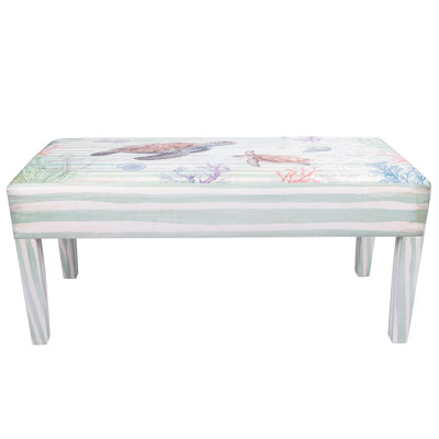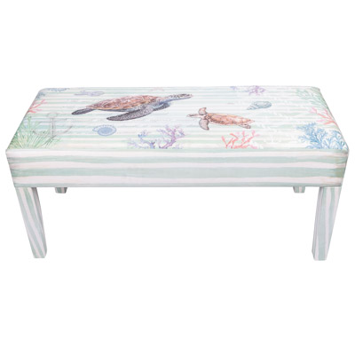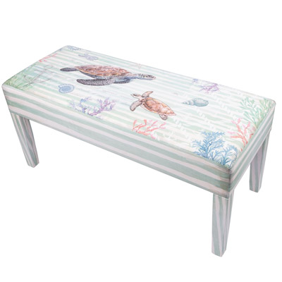 It’s Both Decorative and Practical – A Subtle Striped Background With a Mama and Baby Sea Turtle Decorate this Fine-Looking Leatherette Covered Wood Frame Bench – It’s a Coastal Furniture Accessory That Nicely Fits Any Room in a Cozy Seaside Cottage or Big Beach House
