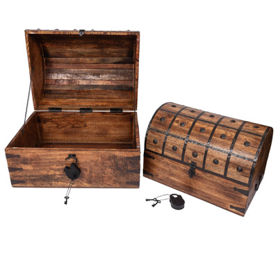 21 Inch and 18 Inch Set of 2 Wooden Pirate Chests