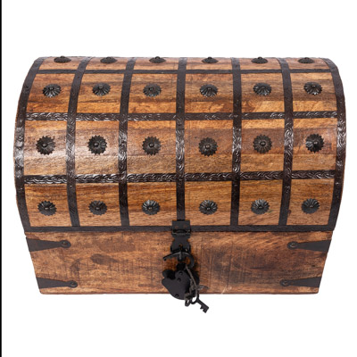 Ahoy Mateys, These are Some Fine Looking Old Fashioned Wooden Chests for a Pirate’s Loot – Made From Wood with Metal Trim and Studs and Even Come With Their Own Padlocks and Keys – Here’s a Set of Two Big Hinged Lid Boxes That Any Buccaneer Would Want