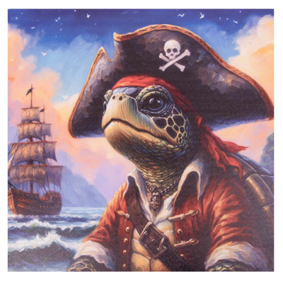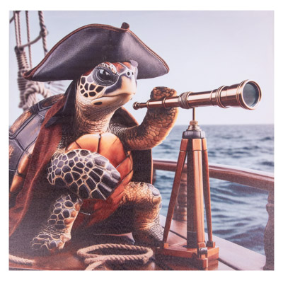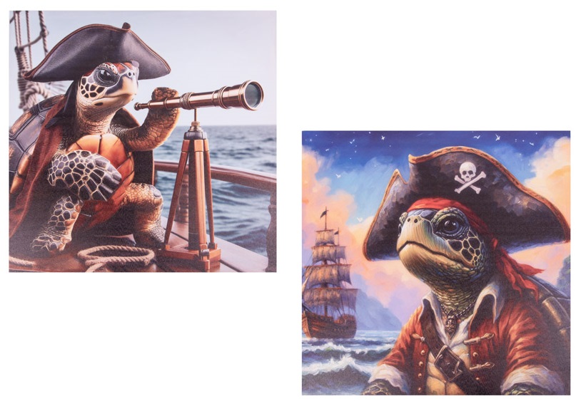 15 3/4 Inches Square Assortment Of Two Turtle Pirate Water-Proof Color Canvas Wall Art