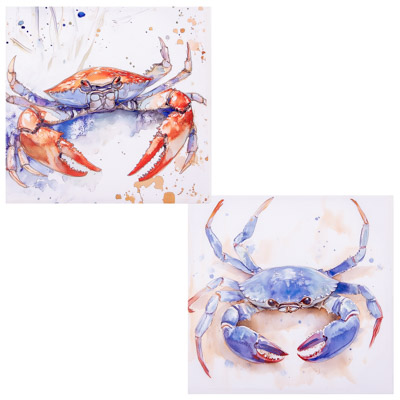 Here’s a Big Accent for the Wall – There’s an Assortment of Two Square Water-Proof Color Canvas Wall Hangings That Give the Look of Watercolor Paintings – The Assortment is a Red Crab and a Blue Crab that Look Great Displayed Together – A Wonderful Price Point on a Dramatic, Decorative, and Seaside Statement for the Wall – Must Be Ordered in Multiples of Two