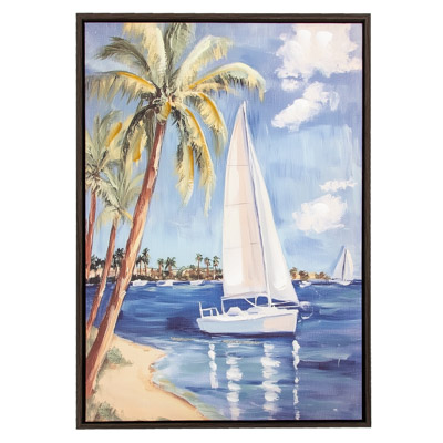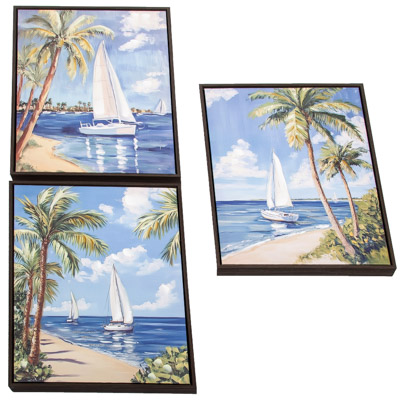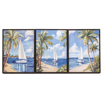 High-Quality, Hand-Embellished Gel Giclee Wall Decor – This is an Assortment of Three Different Sailboat Scenes That Look Great Together – Each Canvas Print Has a Modern Dark Brown-Colored Floating Frame to Compliment the Artwork and is Decorated with Touches of Paint and Metallic Sparkle with Waterproof Colors – Must Be Ordered in Multiples of Three
