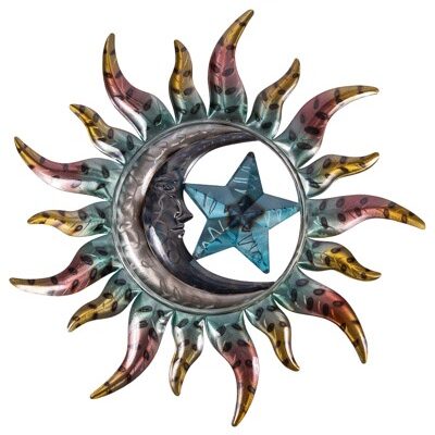 25 3/4 Inch Wide Metal Moon, Star and Sun