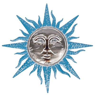 SALE – It’s Hot, and Why Not…At This Size and At This Price…It’s Bound To Shine – This Sun Hangs on Wall for a Beaming Decoration on Porch, Patio, Outdoors or In – Made of All Metal With Aqua Rays Projecting from the Silver Color Sun Face