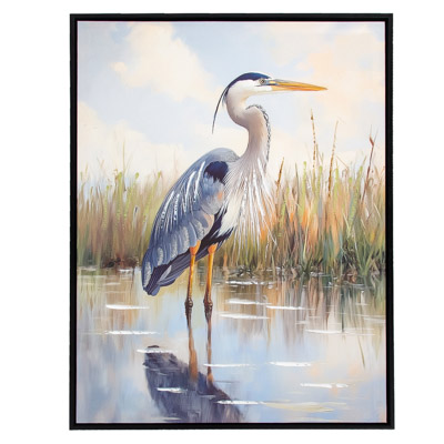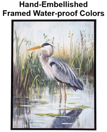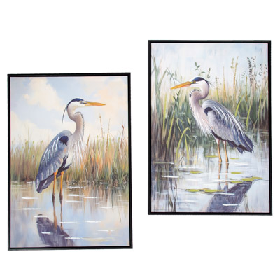 High-Quality, Hand-Embellished Gel Giclee Wall Decor – This is an Assortment of Two Different Heron Scenes That Look Great Together – Each Long-Legged Bird Canvas Print Has a Modern Black-Colored Floating Frame to Compliment the Artwork and is Decorated with Touches of Paint and Metallic Sparkle with Waterproof Colors – Must Be Ordered in Multiples of Two
