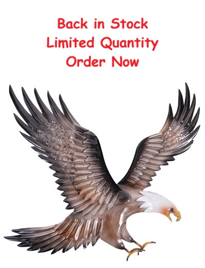 A Wall Hanging Work of Art Made Entirely of Metal – This Majestic Bald Eagle, Wings Outstretched, Hasn’t Landed Yet But He’s About To – Any One Who See’s This Will Want to Land This Beautiful Bird as a Decoration for Their Wall
