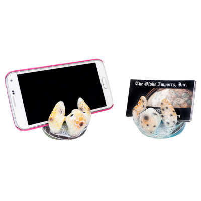 Here’s an Adorable and Inexpensive Polystone Big-Eyed Cell Phone Stand or Business Card Holder – It’s a Sea Turtle That Comes Assorted in Green and Blue Colors – Makes an Quality Gift for a Sea Turtle Lover or a Useful Souvenir at a Budget Price (Props of Phone and Cards Shown Not Included) – Must Be Ordered in Multiples of Two