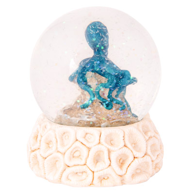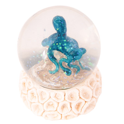 This Attractive Snow Globe Sits Atop a Coral Look Base and in the Middle of the Snow Globe is a Blue Octopus – It’s Made of Polystone and Glass and Makes a Fine and Inexpensive Souvenir – Watch the Sparkly Snow Flakes Appear When You Turn Over the Water Globe and Shake