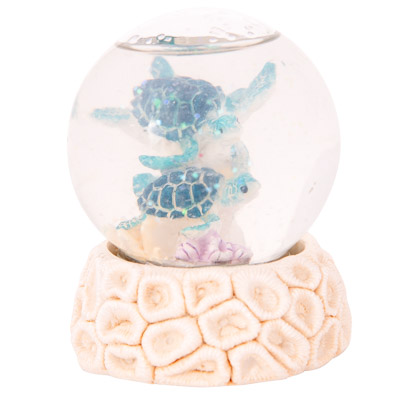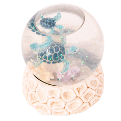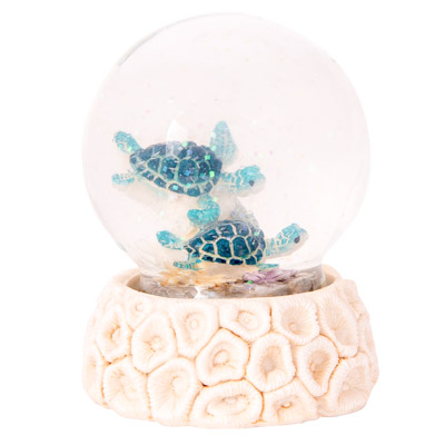 This Decorative Snow Globe Sits Atop a Round Coral Looking Base and in the Middle of the Snow Globe are Two Sea Turtles – It’s Made of Polystone and Glass and Makes a Lovely and Inexpensive Souvenir of Everyone’s Favorite Sea Creatures – Watch the Sparkly Snow Flakes Appear When You Turn Over the Water Globe and Shake