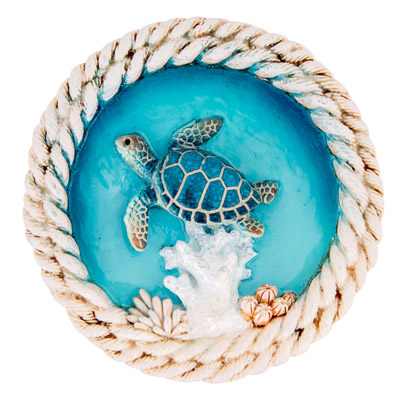 Fine Quality Decorative Round Magnet at a Great Low Price – Made of Polystone, There’s an Underwater Scene with a Swimming Sea Turtle in the Center and Edge to Resemble Double Rope – It’s the Perfect Seaside Souvenir Keepsake for Quick Impulse Sales