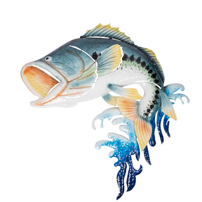 SALE – This Dramatic, Painted Metal Wall Decor Will Make a Big Splash With a Big-Mouthed Bass Fish Jumping Out of the Water – A Trophy-Winning Decoration Whether It’s For the Wall of an Actual Fishing Lodge, Man Cave, or Lakeside Cabin or You Just Want the Room to Look Like It Is