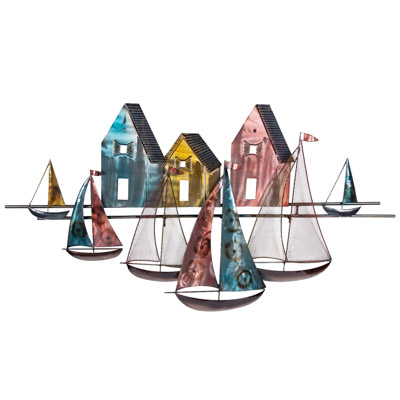 38 Inches Wide x 20 1/4 Inches High Boats and Houses Wall Decor