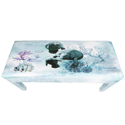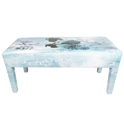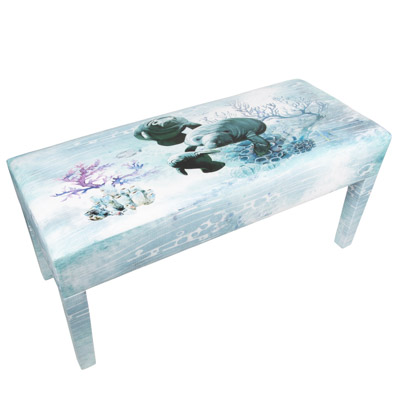 Images of Manatees Swimming Under Water Decorate This Leatherette Covered Wooden Bench – It’s a Practical and Comfy Seat as Well as a Decorative Furniture Accessory to Fit Almost Anywhere You Want or Need It