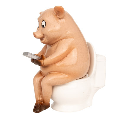 This Little Piggy Stayed Home and Texted on the Toilet – This Shiny Polystone Figurine Has a Pig Holding His Smart Phone and Texting While Sitting on a Toilet – It’s Sure to Make a Unique Gift to Add to a Collection of Toilet Texting Critters