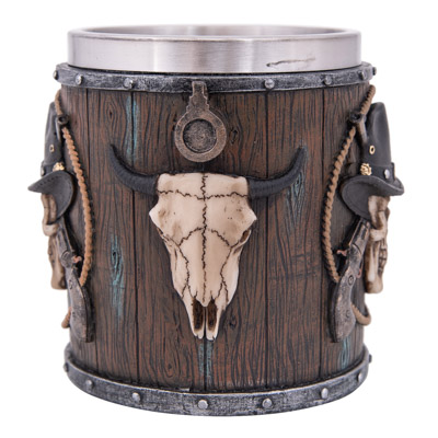 4 1/4 Inches High Cowboy Skull and Gun Drinking Mug