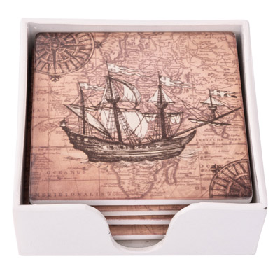 4 1/4 Inches Wide Square Sailing Ship Coaster Set