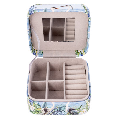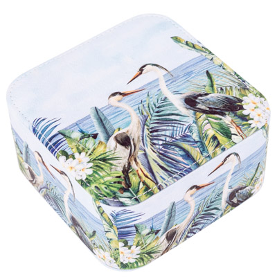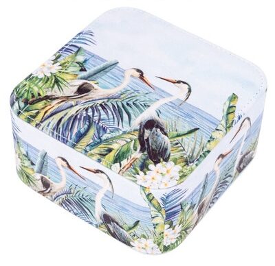 Striking, Colorful Coastal Themed Leatherette-Covered Jewelry Box With a Design Featuring Herons or Egrets on the Outside – Inside There’s a Mirror Under the Lid and Compartments to Store Earrings, Rings, Pins, and Other Items of Jewelry – Wonderful Gift Item and Useful Decorative Accent