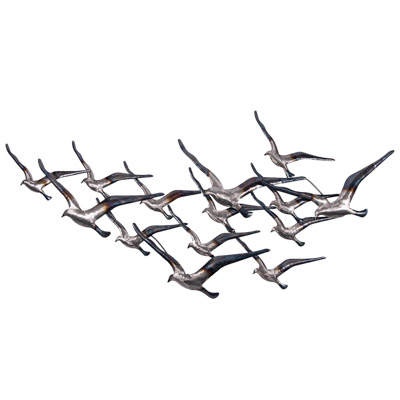 Art in a Broad Sense is Defined as an Arrangement and This Silvery Metal Creation With Variegated Highlights is a Just That – Stunning Wall Decor, Simple in It’s Form, Yet Very Complete in Capturing the Movement of a Flock of Seagulls Make It Modern and Coastal Art – Must Be Shipped on a Truckline