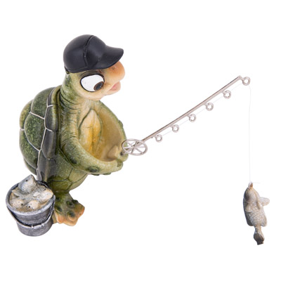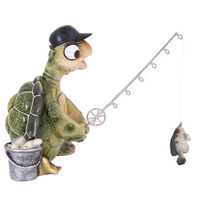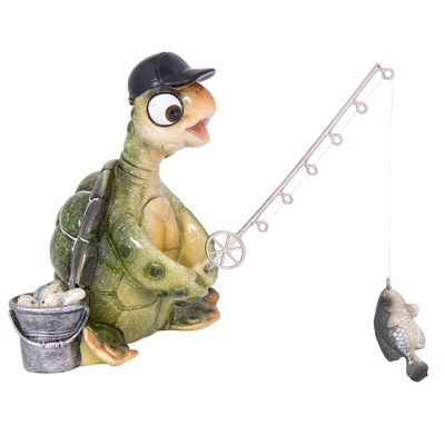 Everybody Needs a Relaxing Hobby, Including a Sea Turtle and This Green Turtle Found His Favorite Pass Time…Fishing – He’s Made of Polystone and He Has a Rod and He’s Reeling in the Fish, But He’s in No Hurry, Except Maybe to Be a Gift to a Fisherman