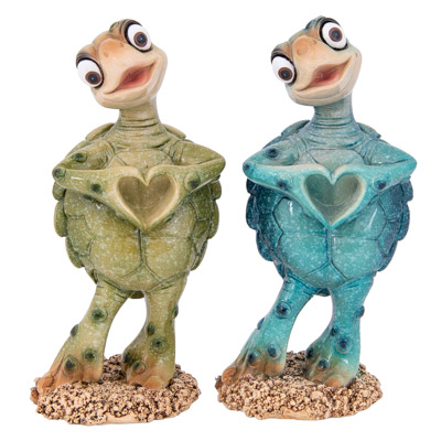 This Assorted Polystone Sea Turtle Figurine Comes in Two Different Colors – It is Standing and Forming a Heart Shape With It’s Hands or Should We Say Front Flippers – We All Love Turtles, and This Makes a Cute Gift to Convey I Love You in Turtle Talk, Emoji Speak, or Any Language – Must Be Ordered in Multiples of Two