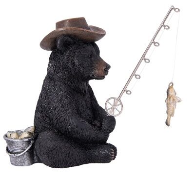 Bears Will Eat Fish and Bears Can Catch Fish, But Did You Ever See One Wearing a Straw Hat and Using a Rod and Reel While Landing Their Dinner – This Fun Figurine is Made of Polystone and this Fellow Makes a Whimsical and Unique Gift to Give or Just Keep for Yourself