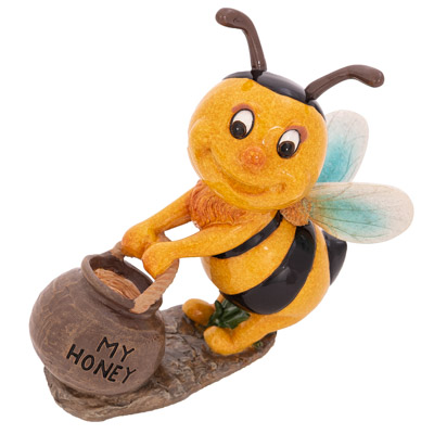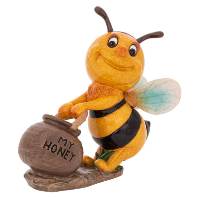 This Cute Bumble Bee is Busy Pushing Around a Jar of Honey – Made Entirely of Polystone with a Shiny Finish, This Whimsical Figurine Makes a “Sweet” Gift for Someone to Give Their Honey