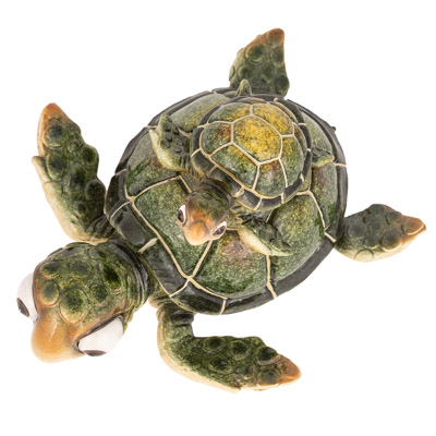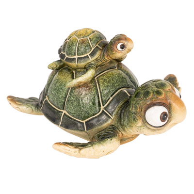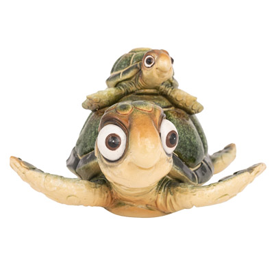 SALE – Here’s an Adorably Goofy, Pop-Eyed, Green Mama Sea Turtle with a Baby Sea Turtle on Top of Her Back – Made of Polystone, This Figurine Makes a Gift to Give and Get a Smile