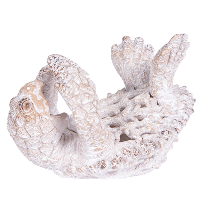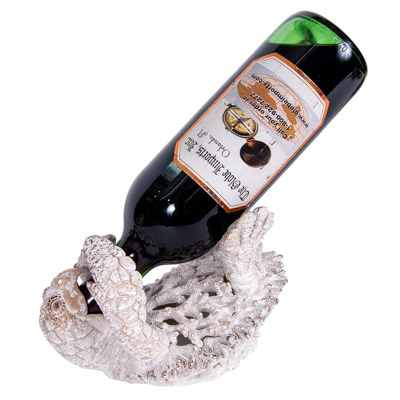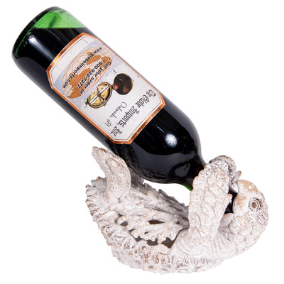 This Thirsty Sea Turtle May Live in the Water, But He Obviously Prefers Wine – It’s a Charming Coastal Bottle Holder That’s as Pretty as It is Practical – The Textured Finish Give It the Look of White-Colored Undersea Coral, but It’s Actually Made of Polystone – The Turtle Happily Holds a Wine Bottle Using His Mouth and Flippers (Bottle Shown Not Included)