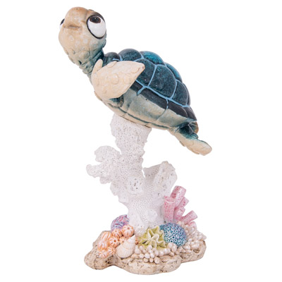 This Blue Sea Turtle is Adorably Whimsical With His Pop-Eyes and Cute Face and He’s Swimming on a Pedestal of Realistic-Looking Undersea Coral Reef – The Entire Figurine is Made of Polystone With a Smooth High Shine Finish to the Turtle and Rough Textured Finish to the Base – A Charming Gift to Give That’s Sure to Give a Smile