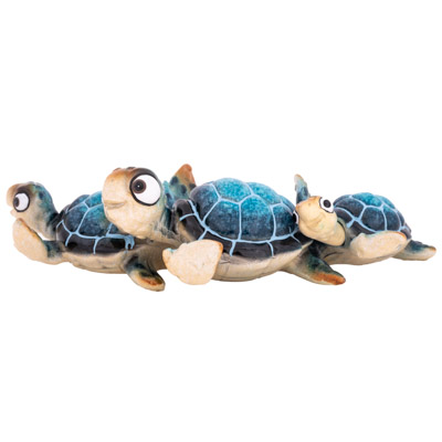 Adorable Polystone Figurine of a Family of Big-Eyed Blue Sea Turtles, Papa Turtle, Mama Turtle, and Baby Turtle – It’s a Sweet Decoration of the Whole Family Swimming Together in a Row Sure to Bring a Smile With Their Cute Faces and Bug-Eyes