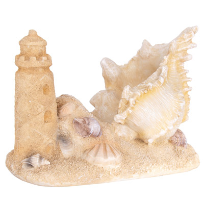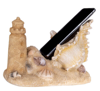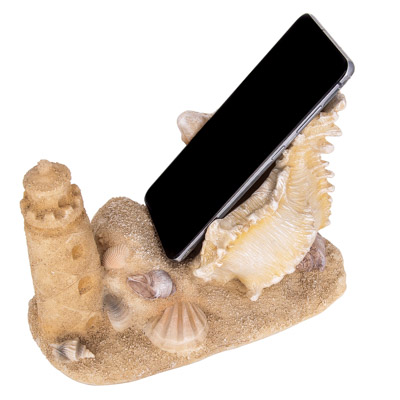 Admire the Beautiful Details and Sand-Like Texture of This Stunning Cell Phone Holder – Designed to Look Like a Lighthouse Sandcastle Sculpture, Complete with Seashell Accents, as If Carefully Crafted on the Beach.