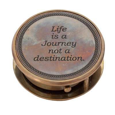 Incredible Gift Item with Deep Meaning – Inscription on Top Reads “Life is Journey not a destination” – Made of Antique Patina Finish Brass to Give the Look of Real Antique, It’s a Working Compass and It Pivots Back Inside Cover to Close