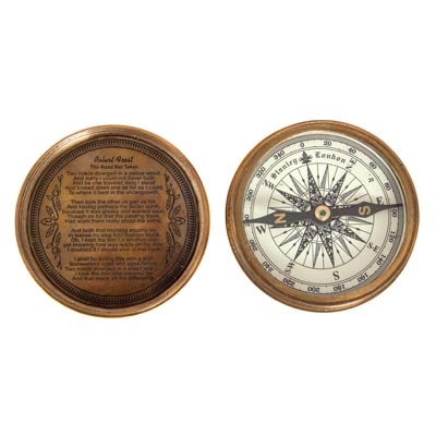 Handsome Working Compass in Antique Finish Brass with Compass Rose Design on Face and Poem Inside Lid – It Comes in Leather Storage Pouch – Quality Item at a Great Price for a Nautical Gift or Reproduction Accessory