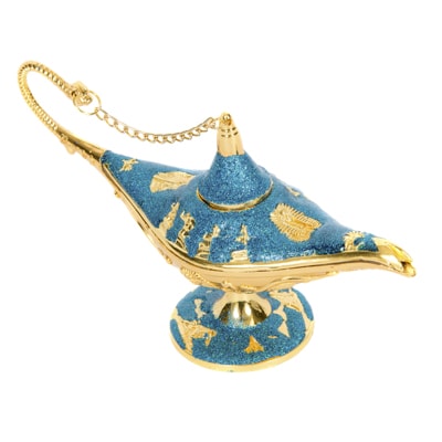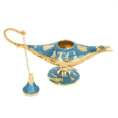 There’s No Genies, No Sorcerer, No Magical Powers, Just a Finely Detailed Metal Aladdin’s Lamp Finished with an Gold and Aqua Color for Storyful Decoration or Well-Wishing Gift Giving