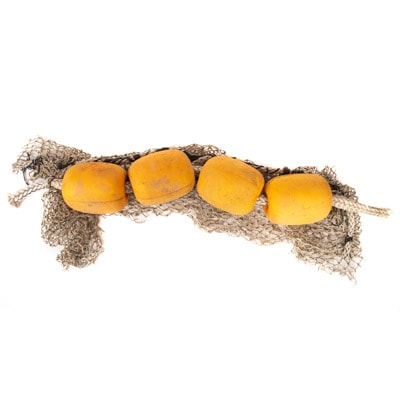 Authentic Nautical Decoration of Real Used Rope with Four Weathered Floats Cut from Actual Fishing Nets – Each Piece Has Rope and a Piece of Net Attached – Each Has It’s Own Character and Varies in Coloring of Floats and Amount of Rope and Net