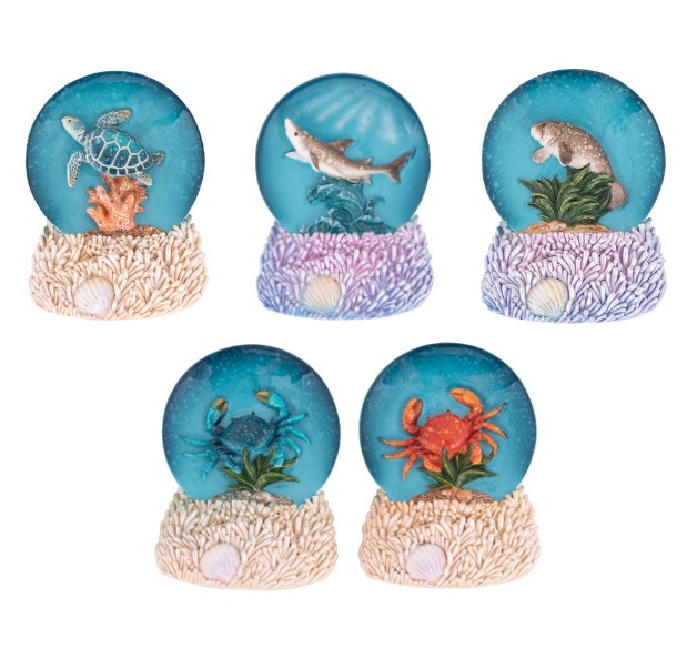 Look at this Assortment of Sea Creatures – An Adorable Magnet Made of Polystone, Shaped Like a Snow Globe with a Sea Turtle, Manatee, Shark, Blue Crab and Red Crab in an Undersea Scene – Perfect Seashore Souvenir Item and Impulse Seller.