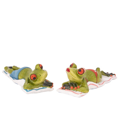 We Know Frogs Like Water, But Here’s What They Do When They are Not Getting Wet – This Assorted Green Frog Figurine is Laying on a Beach Towel, Soaking Up the Rays and Getting a Suntan – Made of Polystone, It’s a Unique Collectable for a Frog Lover or a Keepsake from a Seaside Vacation