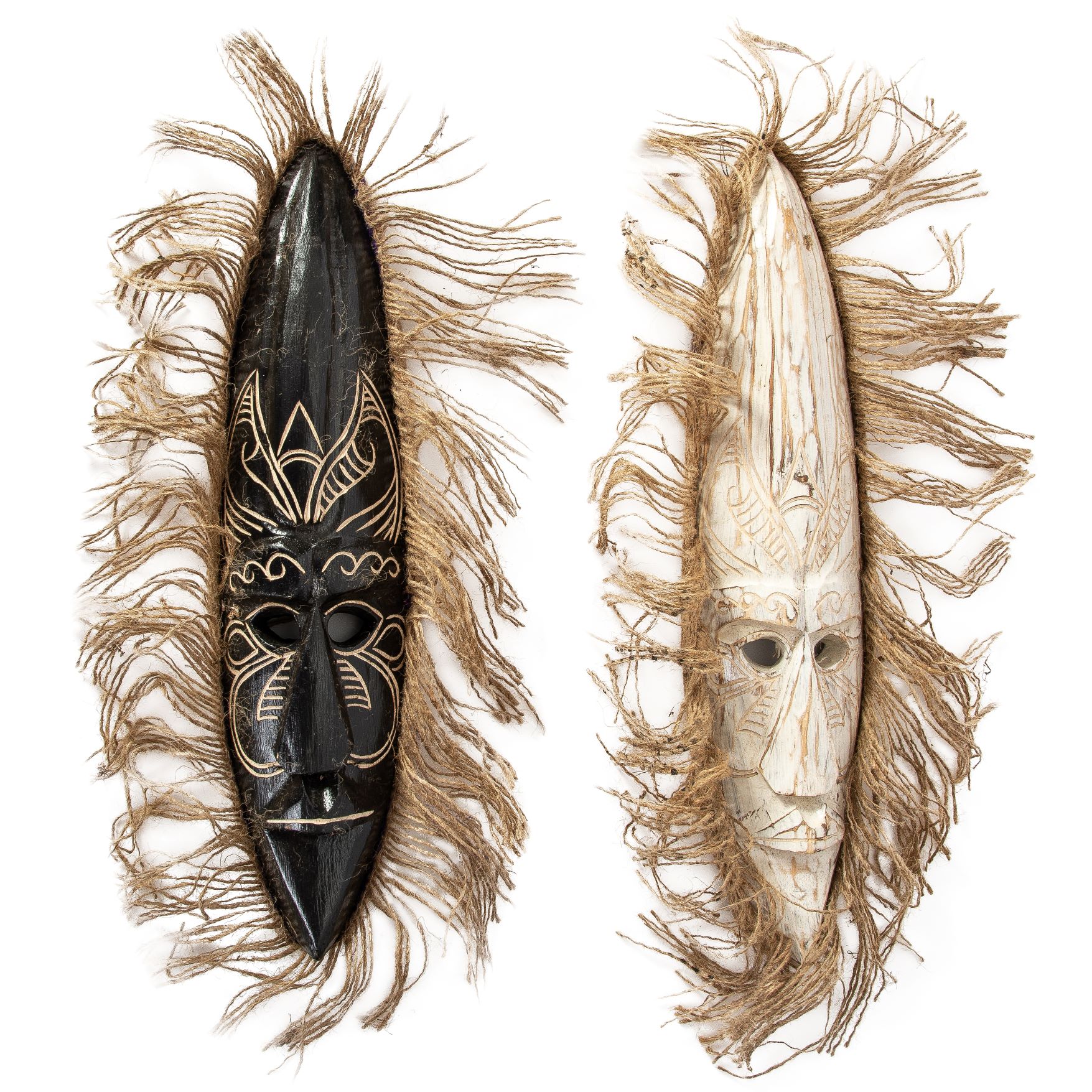 SALE – Very Decorative Wooden Wall Hanging Tribal Mask with Goni, Meaning Burlap, Trim Around the Edges – Comes in Light and Dark Colors Both with Fringe – Make a Great Display When Sold and Displayed Together