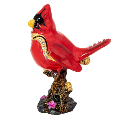 This Gorgeous Enameled Metal Trinket Box is Shaped Like a Red Male Cardinal – Northern Cardinals are Perennial Favorites and This Makes a Lovely Gift – The Bejeweled Bird is Hinged to Open With a Magnetic Closure and is a Keepsake to Hide a Beloved Trinket or Treasure